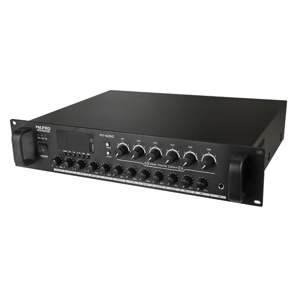 سیستم صوت پیجینگ و صوت عمومی یکی از اصلی ترین و کارآمدترین تجهیزات صوتی در مراکز خرید و مجتمع تفریحی می باشد . آمپلی فایر قلب سیستم صوت است پس در انتخاب آن دقت لازم را داشته باشد از آمپلی فایری استفاده کنید که علاوه بر دارا بودن قدرت کافی و امکانات لازم سیستم آنتی نویز قوی داشته باشد و بتواند نویز را به طور کامل حذف کند آمپلی فایر ولتی اهمی ام.پرو مدل M.pro PV-6260 یکی از بهترین گزینه ها برای خرید است و شما می توانید این آمپلی فایر ولتی اهمی را در پروژه های صوتی حساس استفاده کنید و از کیفیت و امکانات آن نهایت لذت را ببرید. شرکت MPRO تایوان همواره محصولات باکیفیت را در خط تولید خود قرار داده است . علاوه بر کیفیت بالای محصولات قیمت بسیار مناسب موجب شده است تا ام پرو رقیب جدی برای برندهای اروپایی و امریکایی تبدیل شود و محصولات این شرکت به بیش از 60 کشور جهان صادر و در پروژه های مهم بین المللی نصب و راه اندازی شود . هر امکاناتی که برای سیستم صوت پس زمینه و پیجینگ که نیاز باشد در آمپلی فایر ولتی اهمی ام.پرو مدل M.pro PV-6260 طراحی شده است.