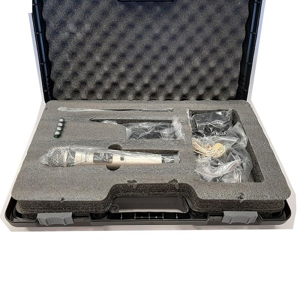 میکروفن بی سیم دوکانال دستی یقه ای اپ پرو مدل AP-M800HB دارای دو عدد میکروفن با دو کانال مجزا می باشد.