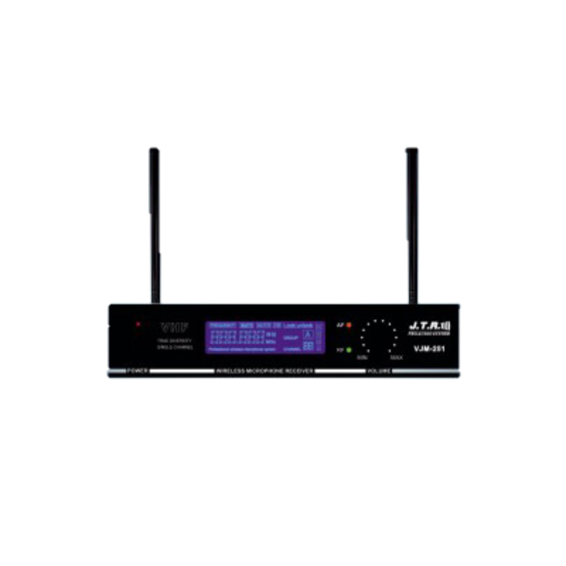 اگر به دنبال یک میکروفن بی سیم باکیفیت و مقرون به صرفه هستید، میکروفن تک کانال دستی VJM-251 جی تی آر می تواند یکی از گزینه های مناسب برای خرید باشد. طراحی زیبا و خوش دست میکروفن بیسیم جی تی آر 251 به همراه ریسیور شیک و کلاسیک آن، جلوه خاصی به مجموعه صوتی شما خواهد بخشید و از طرفی کیفیت و کاربری آسان، المان های قابل توجهی برای VJM-251 به حساب می آیند. فرکانس کاری میکروفن بی سیم JTR مدل VJM-251 ، در طیف 170 تا 260 مگاهرتز قرار گرفته است و میکروفن آن از حساسیت -95 دسی بلی برخوردار است که این یعنی صدا به خوبی توسط آن جذب می شود. میکروفن تنها 225 گرم وزن دارد که با استفاده طولانی دست شما را خسته نخواهد کرد. همینطور ریسیور 251 نیز 1300 گرم وزن دارد.